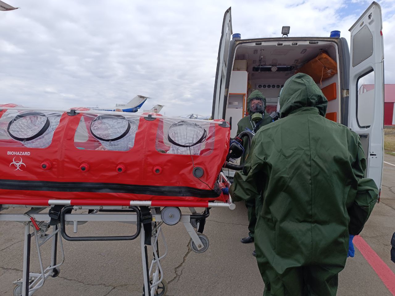 Сотрудники авиагавани отработали последовательность действий в случае завоза опасного инфекционного заболевания на борту воздушного судна.Такие тренировочные учения проводятся ежегодно весной.