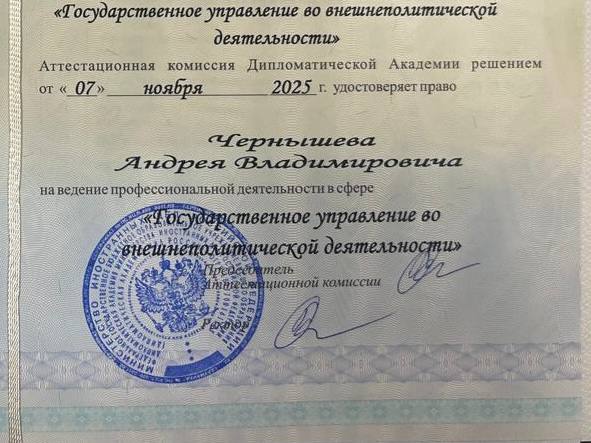 Сегодня исполнилась моя давняя мечта — закончил обучение в Дипломатической академии МИД России по программе «Государственное управление внешнеполитической деятельностью».