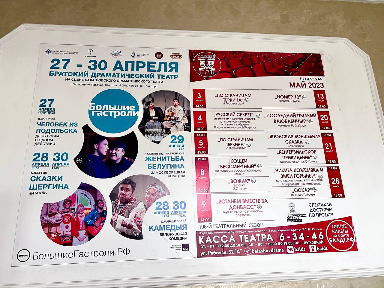 Теперь Балашов принимает театр Братска. Сегодня начинается ответный визит «БДТ к БДТ» . Братский драматический театр представит на земле саратовской области спектакли «Человек из Подольска», «Сказки Шергина», «Женитьба Белугина», «Камедыя». Билеты раскуплены, Балашов ждет.