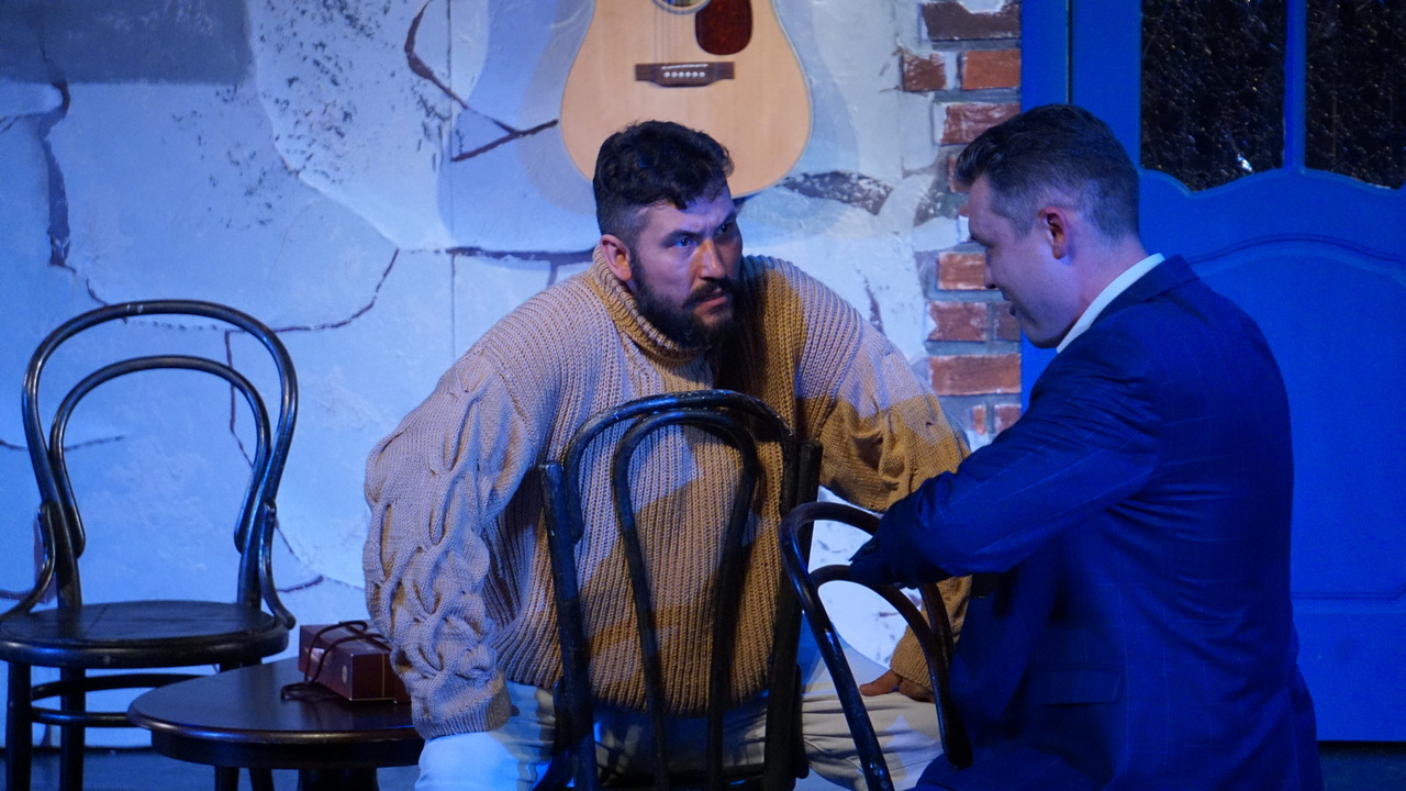 Спектакль «Посмотри на меня» прошел на аншлагах, с долгими овациями, цветами. Но перед тем в театре было много переживаний. Поэтому генеральный прогон сделали с обсуждением. Увидеть постановку еще до премьеры пригласили театралов, а также участников событий в горячих точках, членов семей военнослужащих. И зрителей спросили – что они думают о спектакле. Материал непростой. Драматург Вячеслав Денисов написал пьесу в 2016 году, отправил ее на конкурс «Время драмы» и вошел в число победителей. А затем пьеса дожидалась своего часа. Театры не решались приступить к работе с ней. Действие происходит в Донецке, на фоне военных событий. Еще нет СВО, но уже погибают люди. Автор рассказывает о кризисе в семье ополченца, который вернулся с фронта инвалидом. Война – лишь фон. Но теперь мы все живем на этом фоне. Решаем проблемы, растим детей, любим… Неслучайно Денисов, сам ветеран боевых действий, определил суть спектакля как «немного о любви». Режиссер Андрей Воробьев творил в этом же ключе: