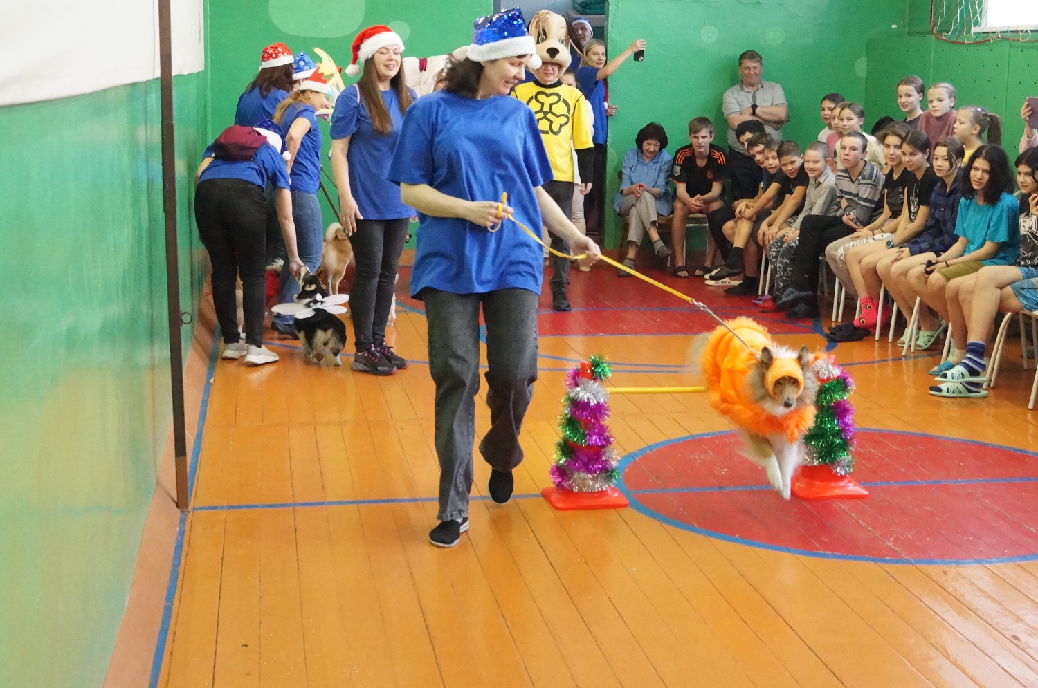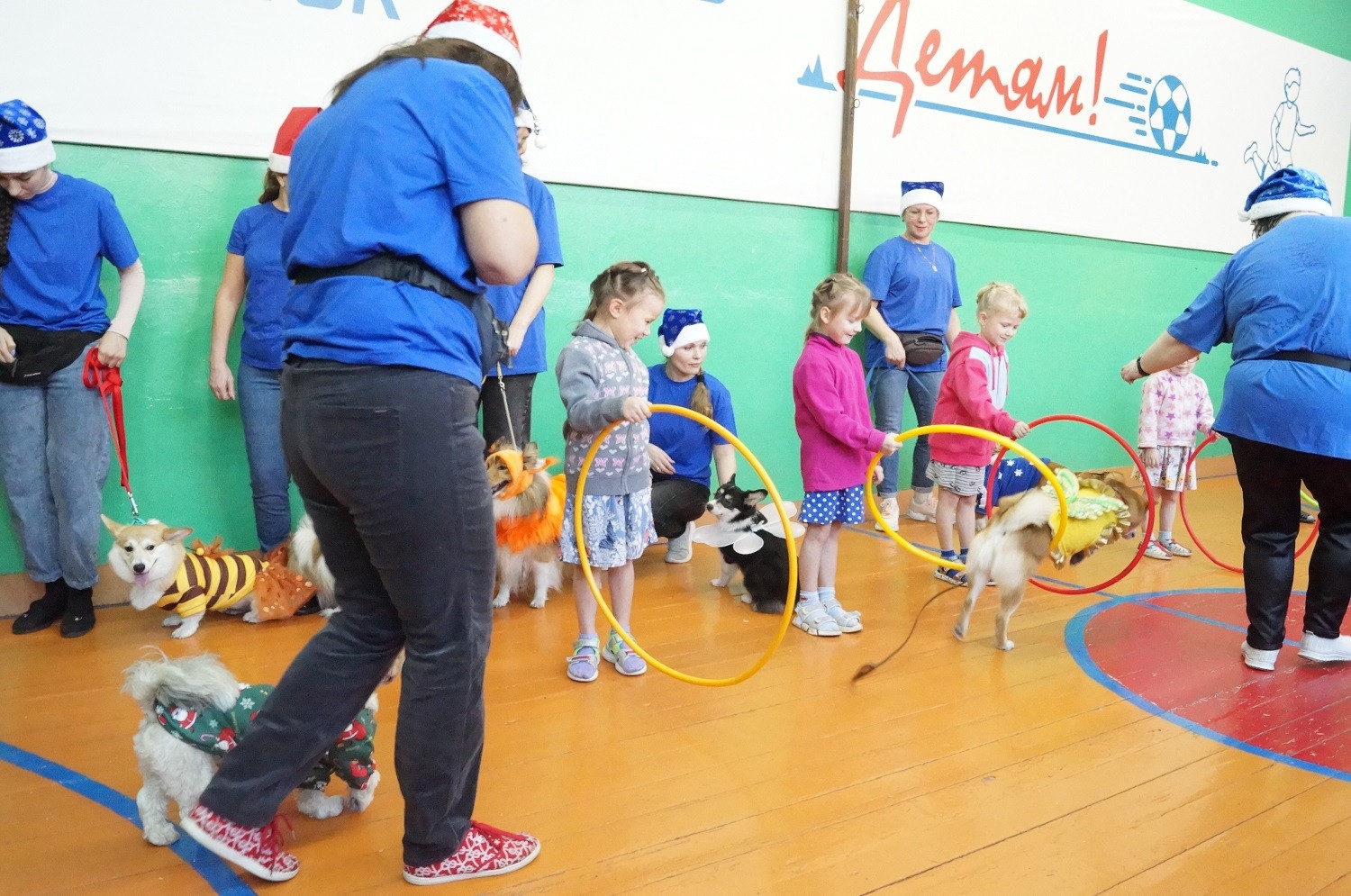 Занятия под руководством кинолога даром не прошли, 16 четвероногих артистов вызвали у воспитанников социального учреждения массу положительных эмоций. Лохматые бегали, прыгали, лаяли, танцевали, показывали трюки, создавая веселую, дружелюбную атмосферу. Перед ребятами выступили колли, сиба-ину, ретривер, корги, той-терьер и другие породы собак из кинологического клуба «БЭСТ», наряженные в костюмы мушкетера, белки, божьей коровки, короля, иных сказочных и не очень персонажей. Конечно же, не обошлось без ёлки, оленя, Снегурочки и Деда Мороза.