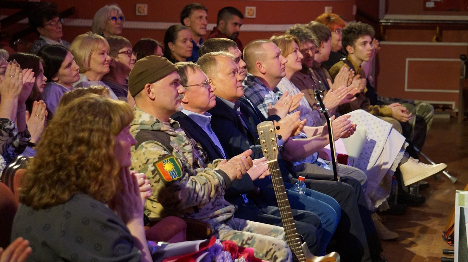 Все началось с идеи журналиста Василия Кибирева провести в стенах театра гитарный вечер и посвятить его грядущему юбилею Победы и Году защитника Отечества. Хотелось собрать в зале братских авторов ‑исполнителей, музыкантов, поэтов и в душевной, камерной обстановке послушать стихи, песни войны – прошедшей и нынешней. В процессе подготовки, поиска участников гитарный вечер трансформировался в фестиваль, который Василий Кибирев назвал «Брацким камертоном», подразумевая связь времен и общее настроение, тон, который создает этот музыкальный инструмент. А общее настроение вечера, настроение гордости за страну, печали по павшим, любви к Родине создавали люди разных профессий, разного возраста, имеющие боевой опыт и знающие о войне по книгам, фильмам, репортажам. В фестивале приняли участие: IT- специалист, поэт и музыкант Денис Горбоносов; врач-реаниматолог и поэт Михаил Ермаченко; мастер по ремонту обуви, автор и исполнитель Владимир Селиванский, школьник Арсений Семенов и студент Родион Мокроусов; журналист и поэт Вадим Скворцов; медик и журналист Ольга Леонтьева; исполнитель бардовской песни Борис Астафьев; актриса Валентина Фитиль; участник СВО Виктор Викторко; певец, музыкант и автор песен Сергей Вдовин, доброволец СВО, ветеран боевых действий, преподаватель Братского музыкального училища Владимир Изюрьев в дуэте с аккомпаниатором Юлией Подкорытовой; певец Игорь Кравцов. Звучали собственные сочинения и произведения Владимира Высоцкого, Роберта Рождественского, Эммануила Прога, Михаила Ронкина, Вениамина Баснера, Михаила Матусовского, Давида Тухманова, Владимира Харитонова, Руслана Осташко, Марка Фрадкина, Евгения Долматовского…. Камертон заработал: зал жил, дышал, слушал, подпевал, плакал и был заодно с теми, кто на сцене. А песни участников СВО слушали стоя. Момент, когда Виктор Викторко, командир штурмового взвода, опираясь на костыли, запел «На безымянной высоте», а по залу покатилась волна встающих, запомнится надолго. И ветеранам- зрителям, и школьникам, и студентам. Это много значит – быть вместе с большим числом людей, которые чувствуют одинаково. Словом, все получилось, как и было задумано. И в финале благодарили всех – участников, организаторов, помощников- предпринимателей, Братский драматический театр и, конечно, добрых и отзывчивых зрителей – слушателей, ради которых все и происходило. Зал единодушно желал «Брацкому камертону» звучать и в будущем. В добрый путь, фестиваль.