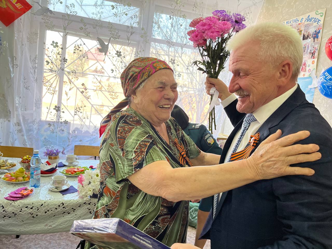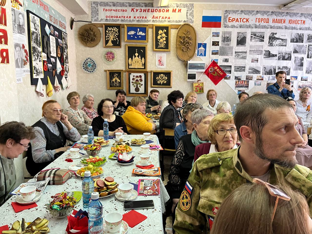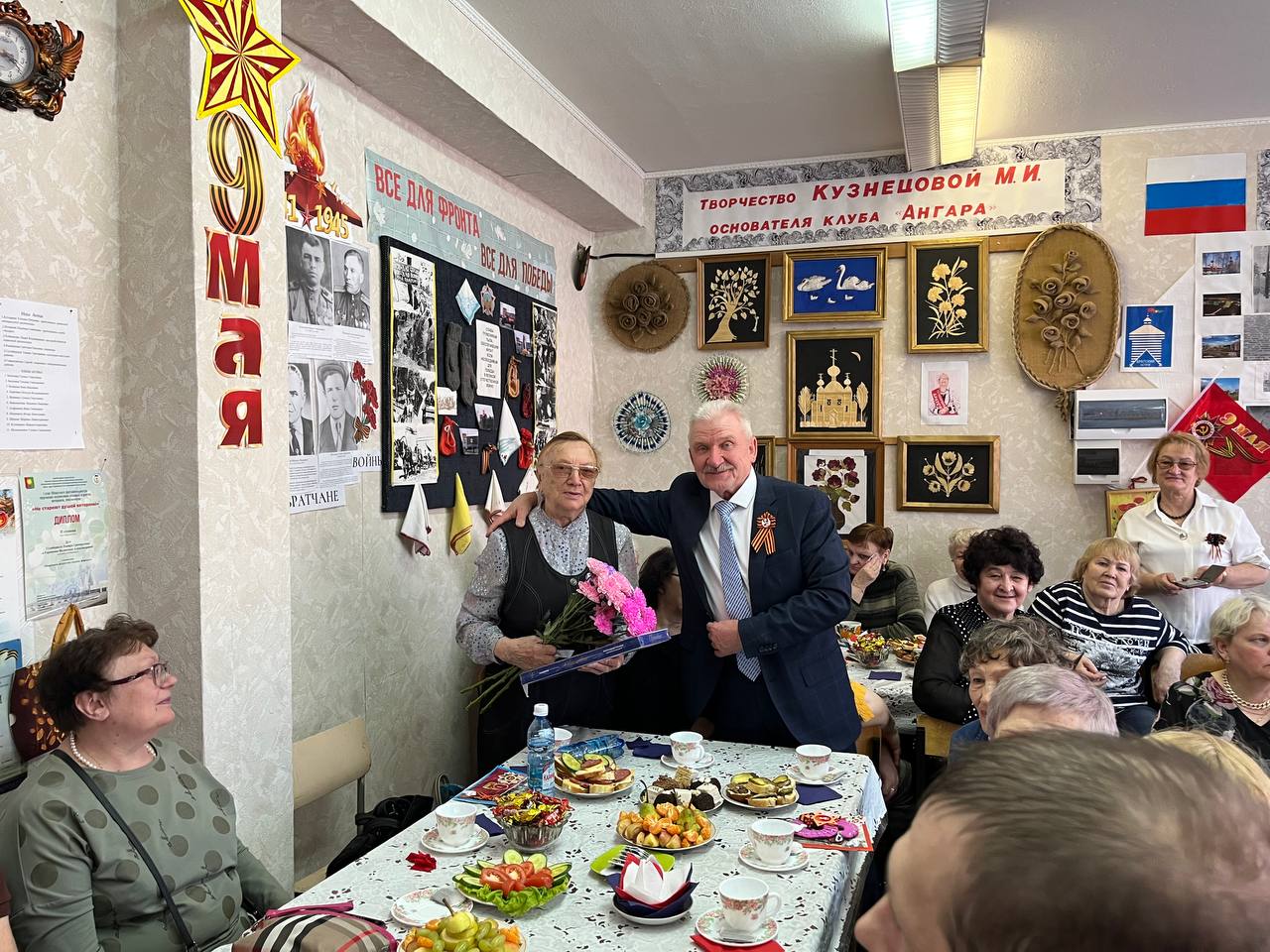 А в клубе «Ангара» в здании ДОСААФ состоялся не менее прекрасный праздник для ветеранов 8,15 и 16 микрорайонов. Почетными гостями вечера стали труженики тыла, уже знакомые мне по предыдущим праздничным встречам за чашкой чая, мама бойца, который сейчас защищает будущее нашей Родины и участник боевых операций СВО с женой, а украшением программы, которую помогли провести сотрудники ИФНС, стало выступление ансамбля «Сибирянка» (руководитель Тамара Сулаберидзе , аккомпаниатор Юлия Подшивалова) и учащихся школы. В «Ангаре» всегда многолюдно и весело, а руководит его работой неутомимая Татьяна Петровна Кутырева. Спасибо всем участникам за прекрасный праздник, а ветеранам трудового фронта и герою нынешней спецоперации– низкий поклон!