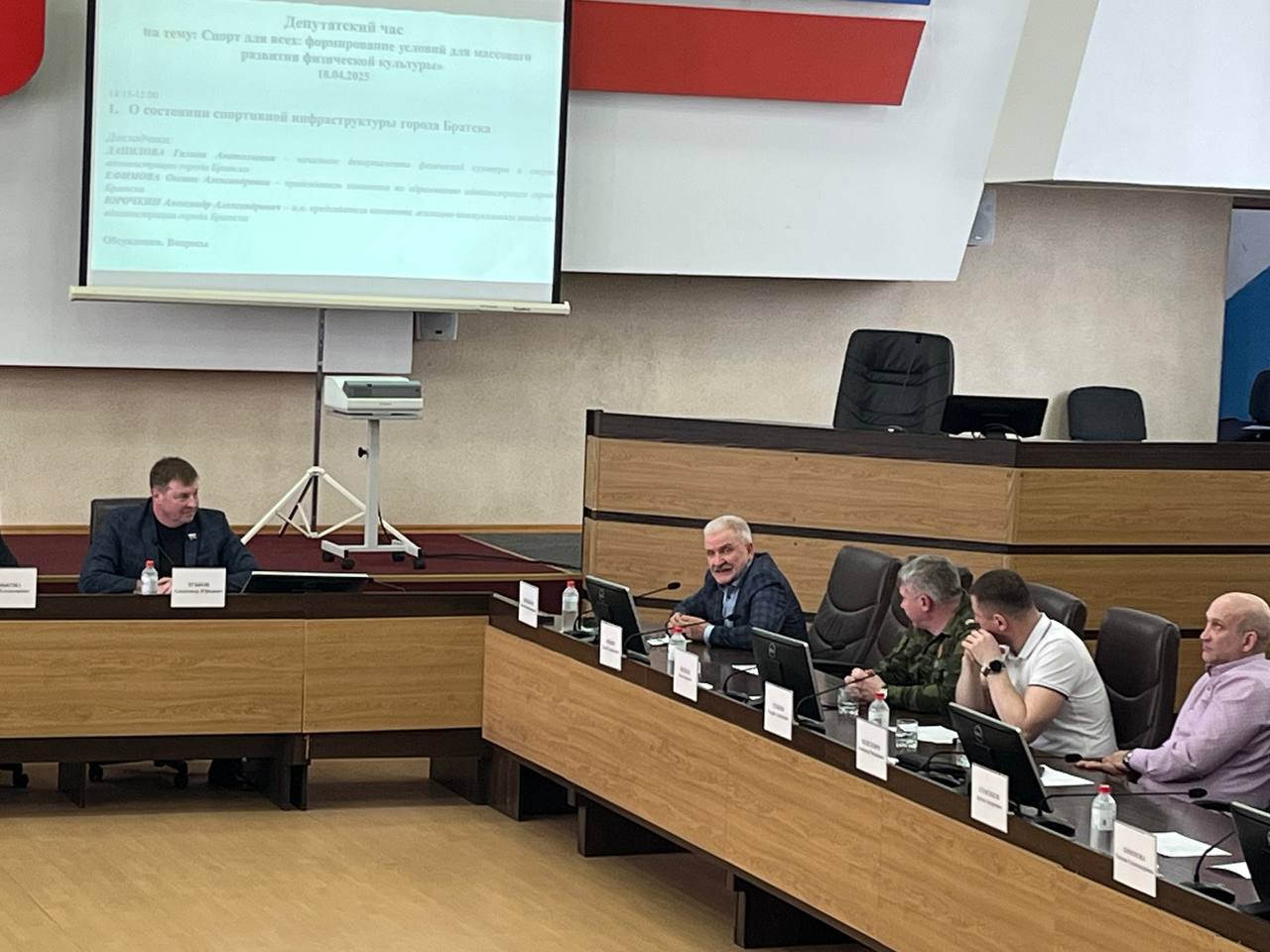 Депутатский час по массовому развитию физической культуры в Думе города Братска. Как всегда, все упирается в нехватку средств. Выслушали разные мнения, сформировали предложения для администрации, в том числе, изучить опыт других муниципалитетов по организации этой работы. По крайней мере, начало положено, все мы понимаем, как важно создать условия, прежде всего, для ребятишек, чтобы отвлечь их от многочасового сидения в Интернете и направить их энергию в нужное русло. Для себя поставил задачу возрождения команд по хоккею и футболу в Порожском, в этом направлении и работаем совместно с департаментом спорта.