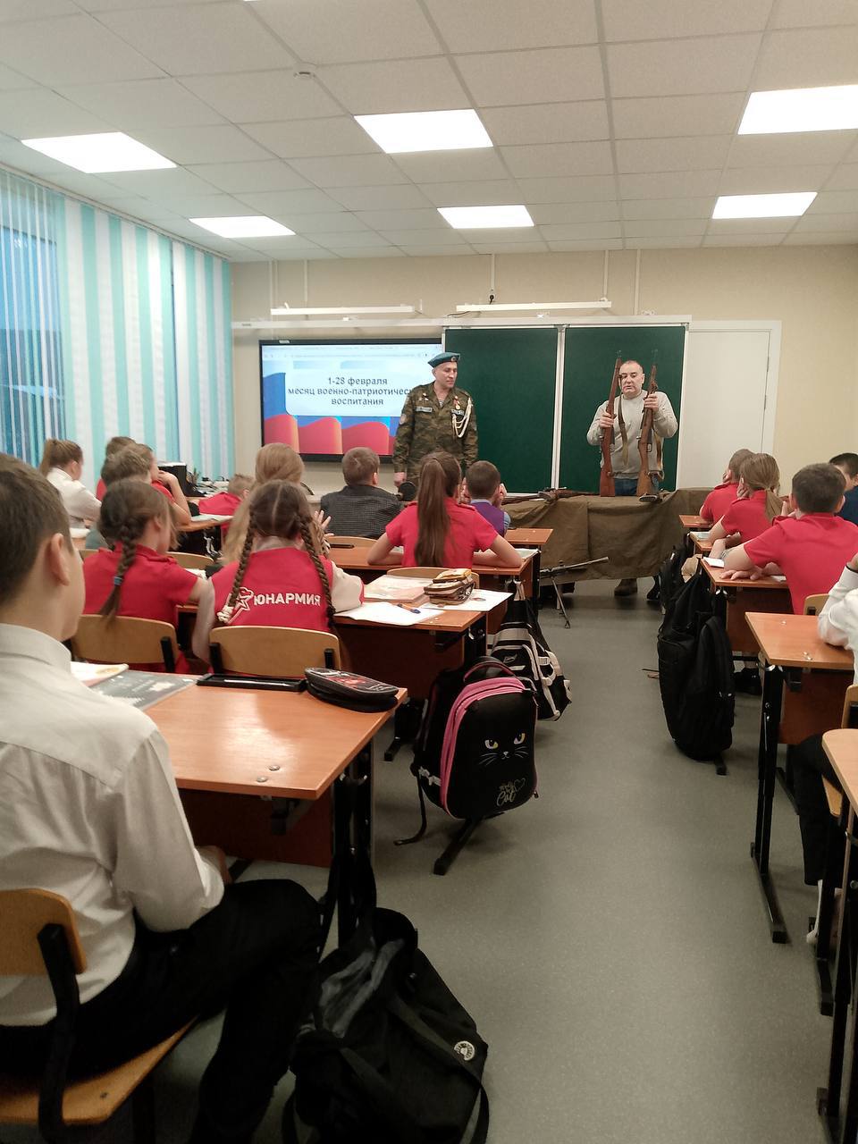 В тот же день в школе№ 6 ж.р. Порожский состоялось замечательное мероприятие в рамках месячника по военно-патриотическому воспитанию молодежи. Участники группы военно-исторической реконструкции «Север» Иван Лапушкин и Леонид Рыбников организовали выставку-демонстрацию образцов российского оружия времен Первой мировой и Великой Отечественной войн, подробно рассказав учащимся о каждом из представленных видов оружия. Во встрече участвовала также председатель ветеранской организации ж.р. Порожский Т.Н. Сайченко, мероприятие состоялось по ее предложению. Такие мероприятия ребятам всегда очень интересны, независимо от их возраста, будь то учащиеся колледжа или начальной школы. Всё оружие было настоящим, но охолощённым, то есть стрельба боевыми патронами из представленных образцов была невозможна. Зато можно было подержать его в руках, что ребята и сделали с большим удовольствием.
