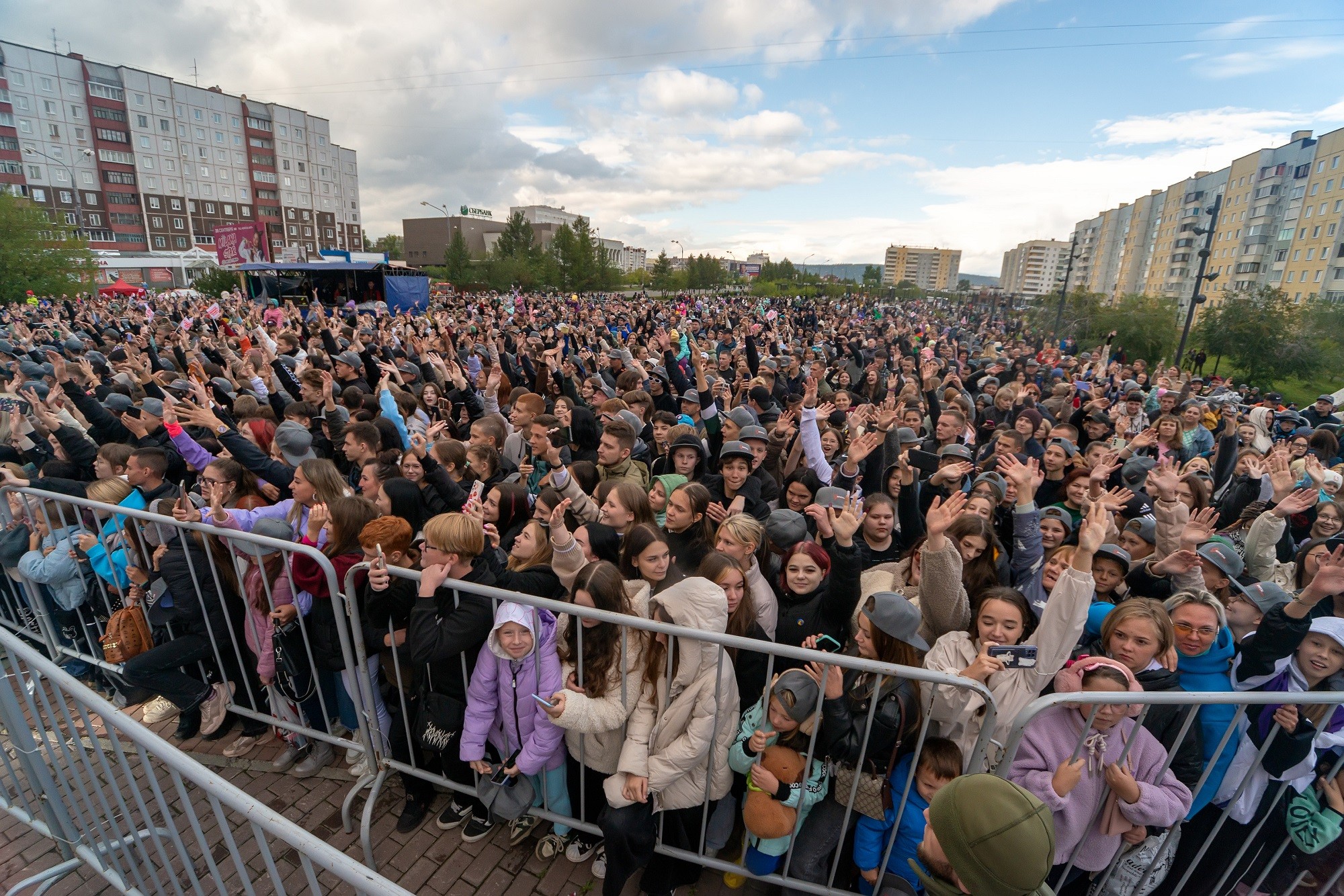 Хотя погода выдалась ненастная, братчане укрывались от дождя под зонтами и спасались дождевиками, но уходить никто не собирался. Главная звезда вечера — Клава Кока! Братчане ждали поп-сенсацию с нетерпением и устроили ей по-настоящему теплый, «братский» прием. Даже самые маленькие горожане «отжигали» под песни артистки.