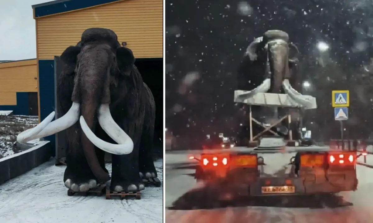 Одним из главных препятствий стал поиск подходящего гаража, который вместил бы четырёхметрового гиганта. Несмотря на то, что сделан мамонт из множества пористых пенопластовых блоков, для его погрузки пришлось подгонять автокран.