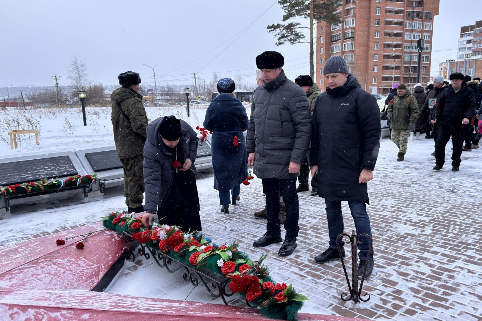 Минутой молчания присутствующие почтили память героев. Возложили к Вечному огню памятную гирлянду и цветы.