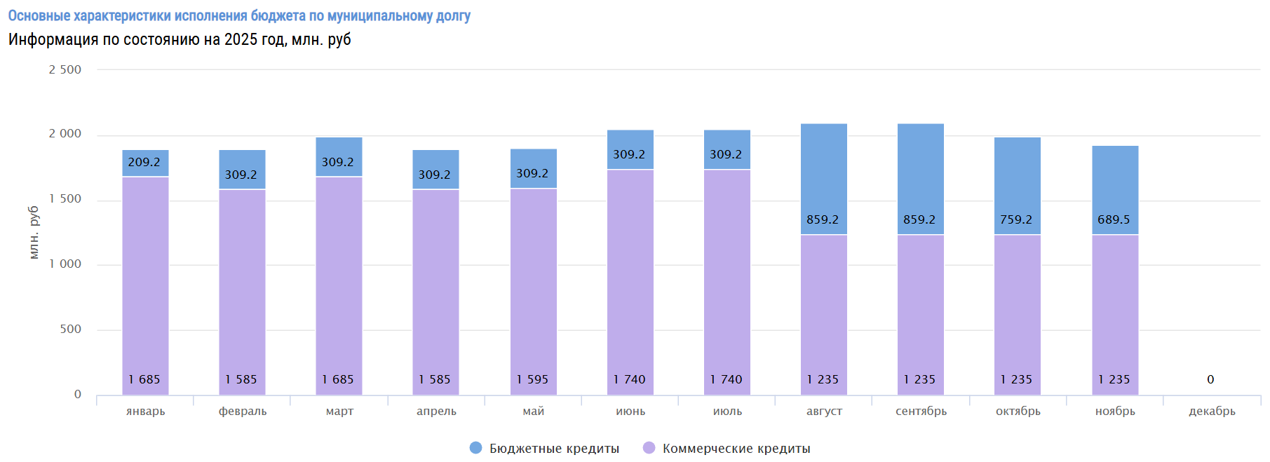 По данным на 1 декабря, муниципальный долг Братска составляет 1,92 миллиарда рублей. Это примерно на 70 миллионов рублей меньше, чем месяцем ранее. Как следует из опубликованных документов, сокращение произошло за счет погашения бюджетных кредитов на указанную сумму. Сейчас общая задолженность по ним составляет 689,5 миллиона рублей. Задолженность по коммерческим кредитам не изменилась — 1,2 миллиарда рублей. Месяц назад муниципальный долг сократился на 100 миллионов рублей также за счет погашения бюджетного кредита.
