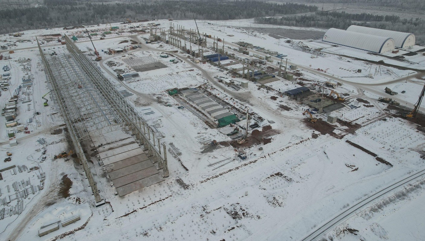 Активная фаза строительства началась в 2023 году. Сейчас на площадке продолжается монтаж металлоконструкций, свайного поля, фундаментной части. Подрядчик также возводит дополнительные вспомогательные объекты.