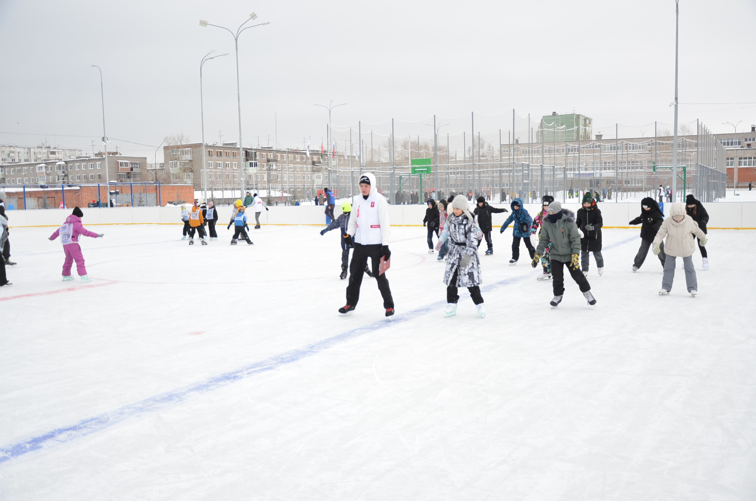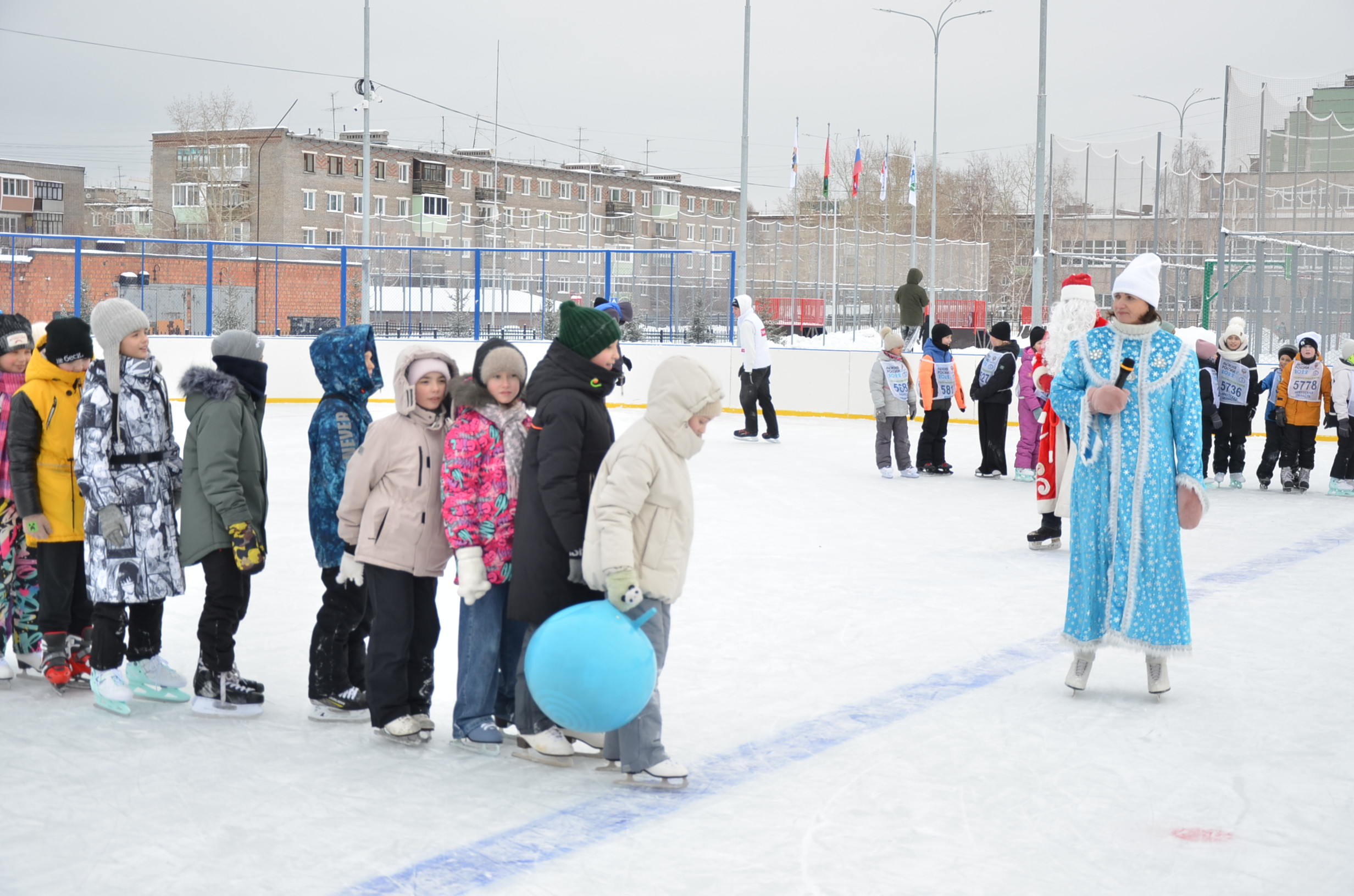 Для ребят организаторы подготовили подвижные командные эстафеты на волейбольной площадке, на соседнем поле дети сыграли в футбол. Кульминацией события стали веселые старты на ледовой площадке с участием школьных команд. Атмосферу праздника создавали Дед Мороз и Снегурочка, в роли которых выступили директора школ Сергей Федоров и Елена Гребенникова.