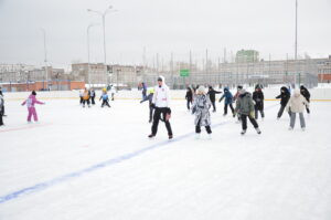 В первый день новогодних каникул на стадионе школ №14 и 16 состоялось открытие ледовой площадки. Участниками события стали более 100 человек – ученики, преподаватели, родители школьников.