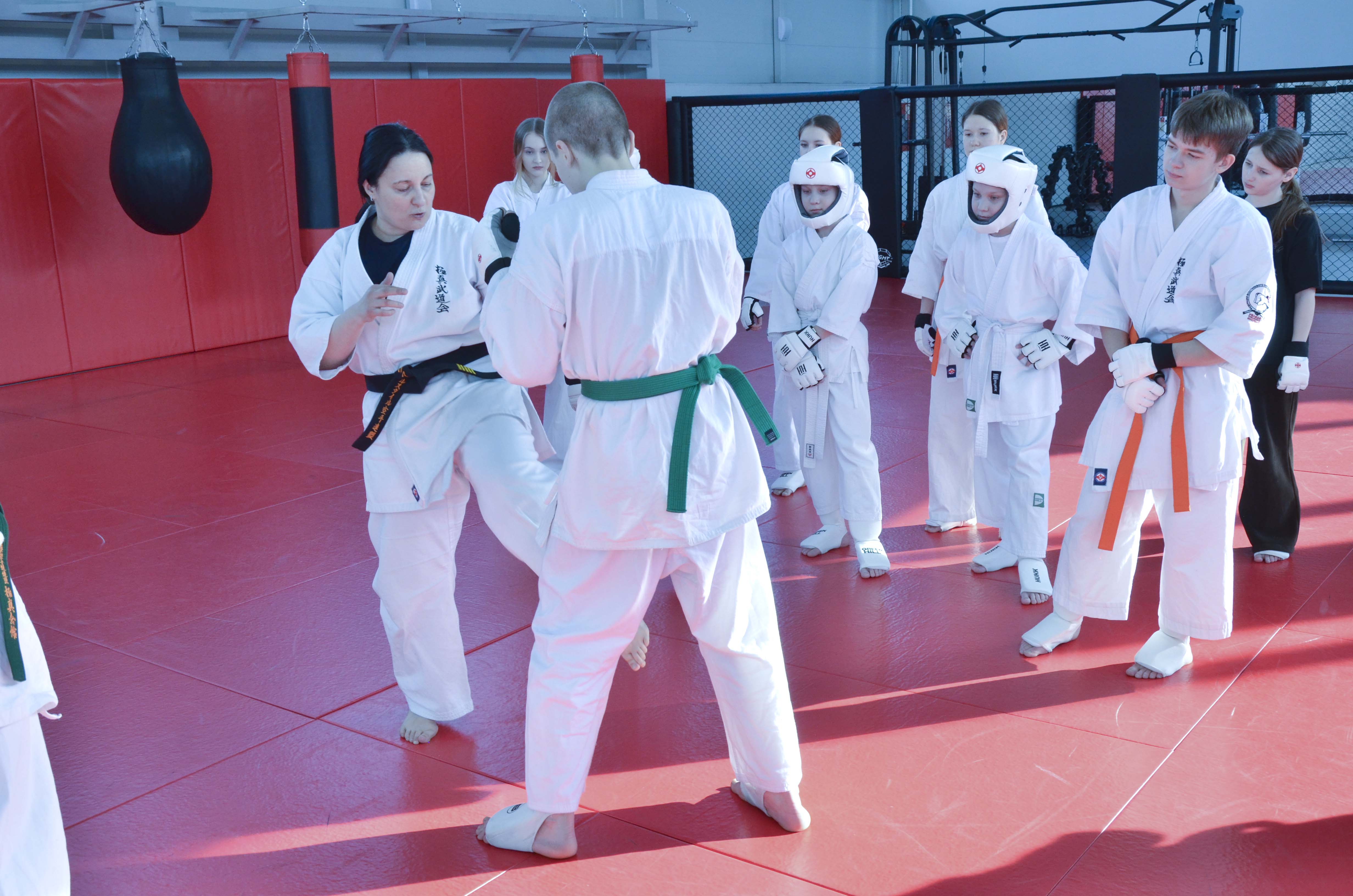 - Каждую тренировку мы начинаем с разминки, разминаем суставы, присутствует силовая нагрузка, постепенно переходим к технике каратэ, – рассказала Наталья Сидорова. – Есть работа на месте – «кихон», с боксерскими мешками, «лапами», в парах. Периодически проводим поединки в полной экипировке – в шлемах, жилетах, наколенниках, защите на голеностоп. В первую очередь я стремлюсь воспитать своих ребят сильными и здоровыми, помимо физического развития пытаюсь привить еще и нравственные моральные качества, чтобы они уважительно относились к тренерам, учителям, друг к другу. Спортивные достижения – на втором месте, и это длительный тяжелый путь. Например, Игорь Басов, который дошел до 1 дана, занимается у меня с 6 лет, а сейчас ему 18.