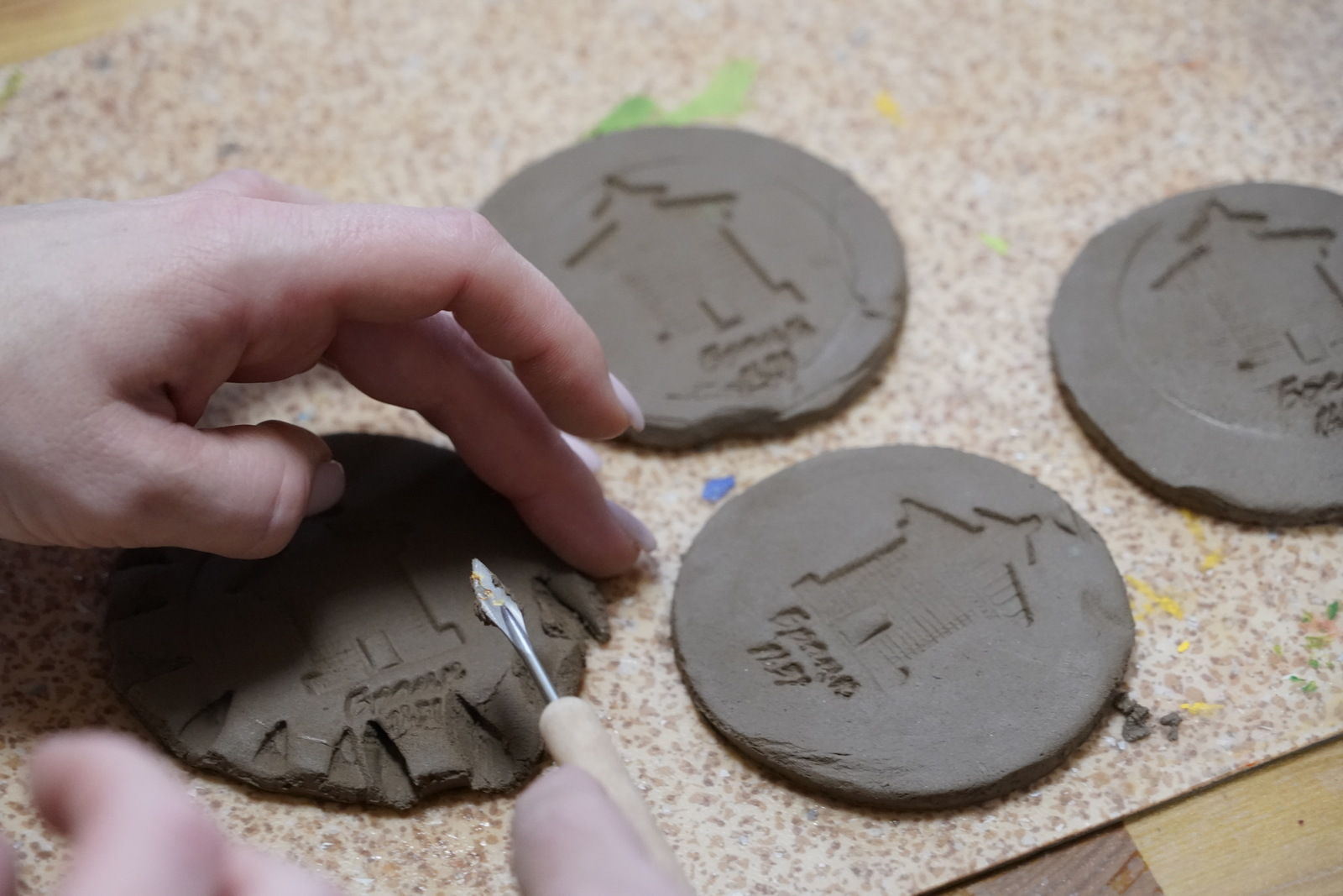 Вместе со своими педагогами ребята рассказали гостям, какие поделки можно делать из глины, показали несколько техник по ее обработке и провели урок по изготовлению сувенирных медальонов. Совместно с ребятами волонтеры изготовили глиняные монеты с изображением Братского острога – символа северной столицы Приангарья и совы – символа мудрости. Также для волонтеров организовали экскурсию по импровизированному музею, в котором представлены сотни сделанных руками воспитанников центра работ.