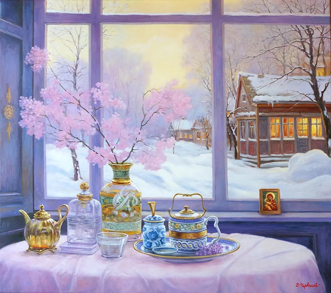 Иллюстрация: Зимний вечер на даче. Владимир Черкасов.