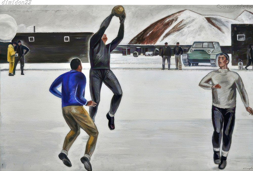 Иллюстрация: Снегирёв Аркадий Викторович (18.03.1930, Москва – 17.04.1994, Ра́квере Эстонии). «На полярной станции». 1967 год. Холст, масло; 80,2 х 125 см.; (Национальный художественный музей Республики Саха, Якутия).