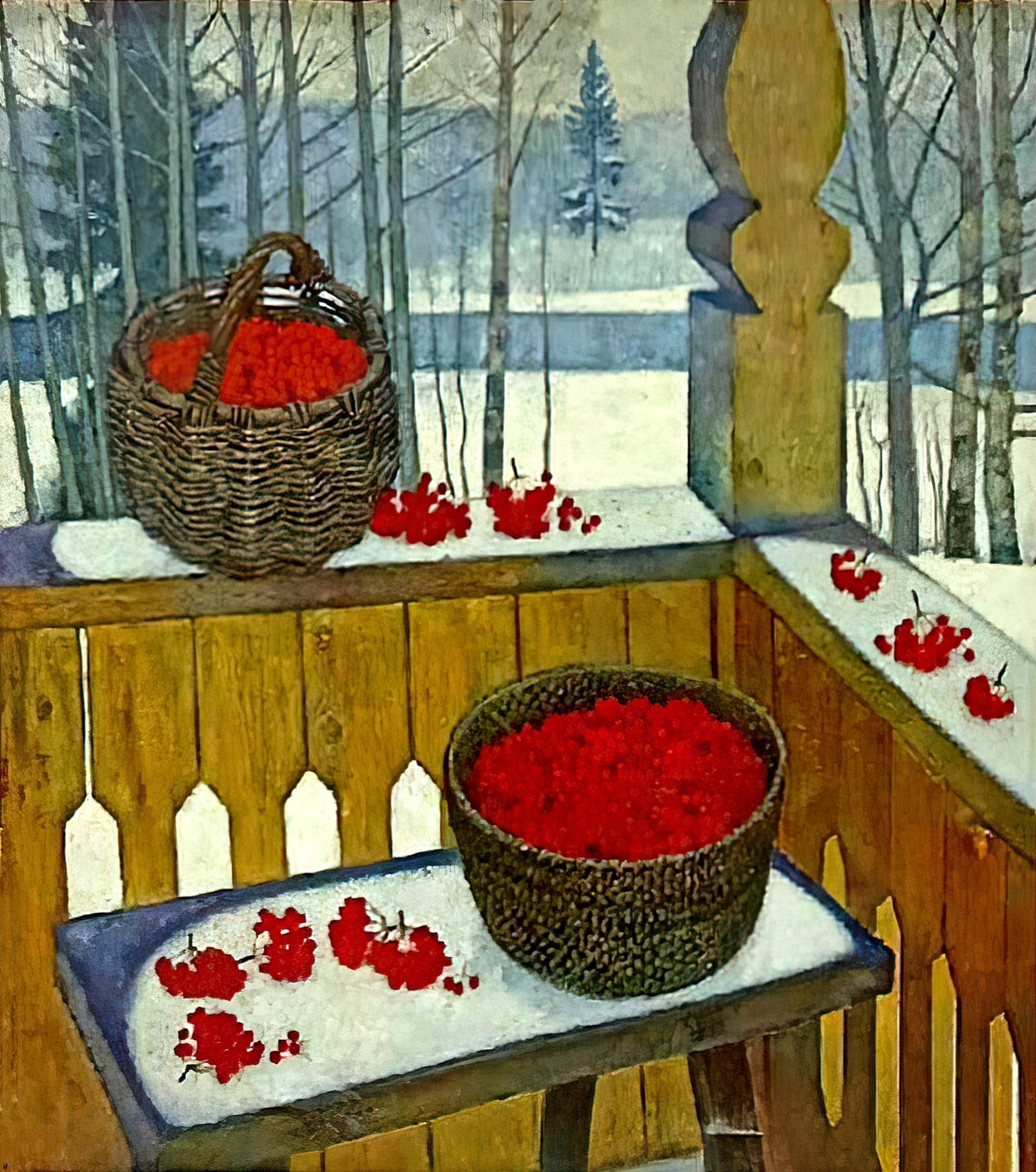 Иллюстрация: Журавлев Дмитрий Власович. «Ноябрь. Натюрморт с калиной», 1983.