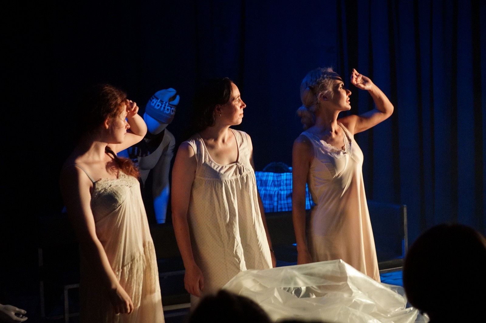 Это был необычный опыт работы над спектаклем. Минимум декораций. Костюмы из подбора – так в театре называют уже готовые, «работавшие» в других спектаклях. Ведь никто не знает, чем закончится эксперимент. А если зритель не примет? Но репетиции шли совершенно всерьез. Спорили, искали, «присваивали» текст, входили в образы. А после первого показа, на проекте – дорабатывали.