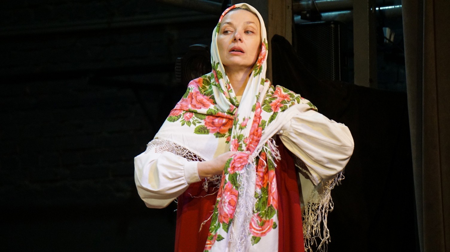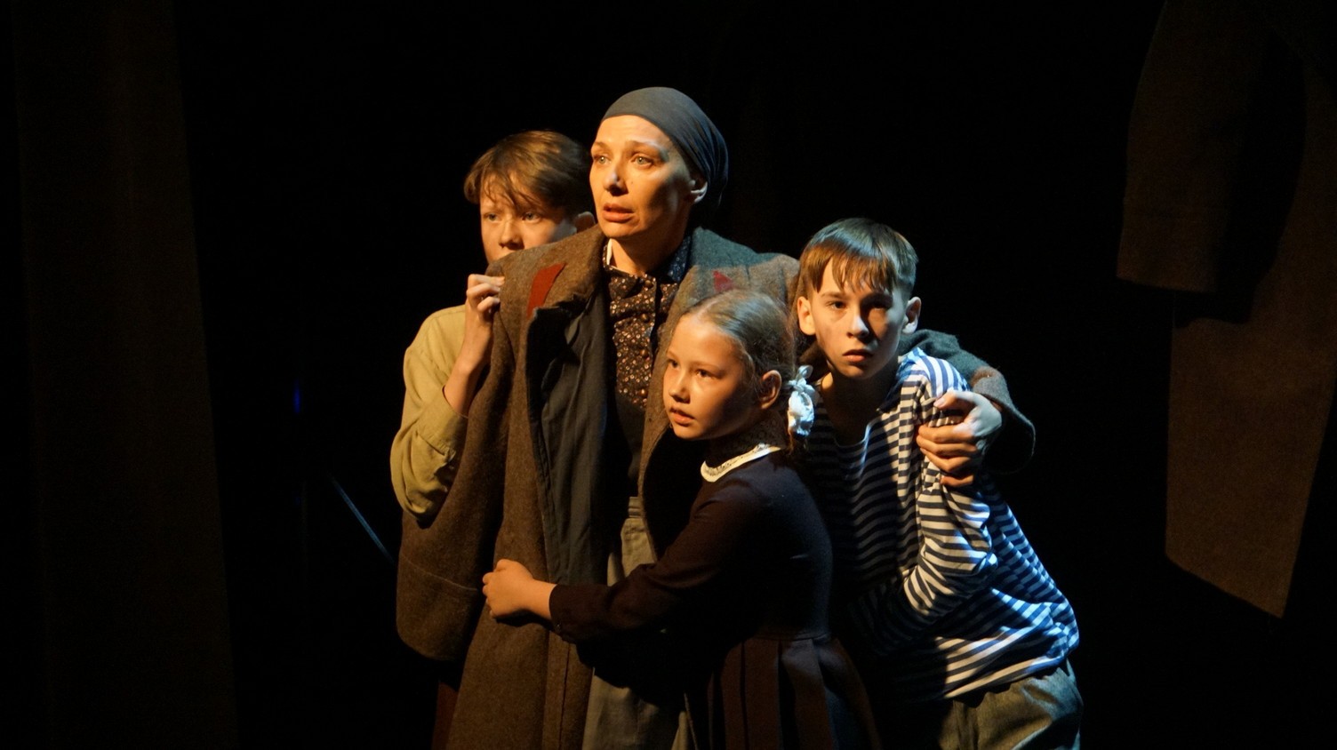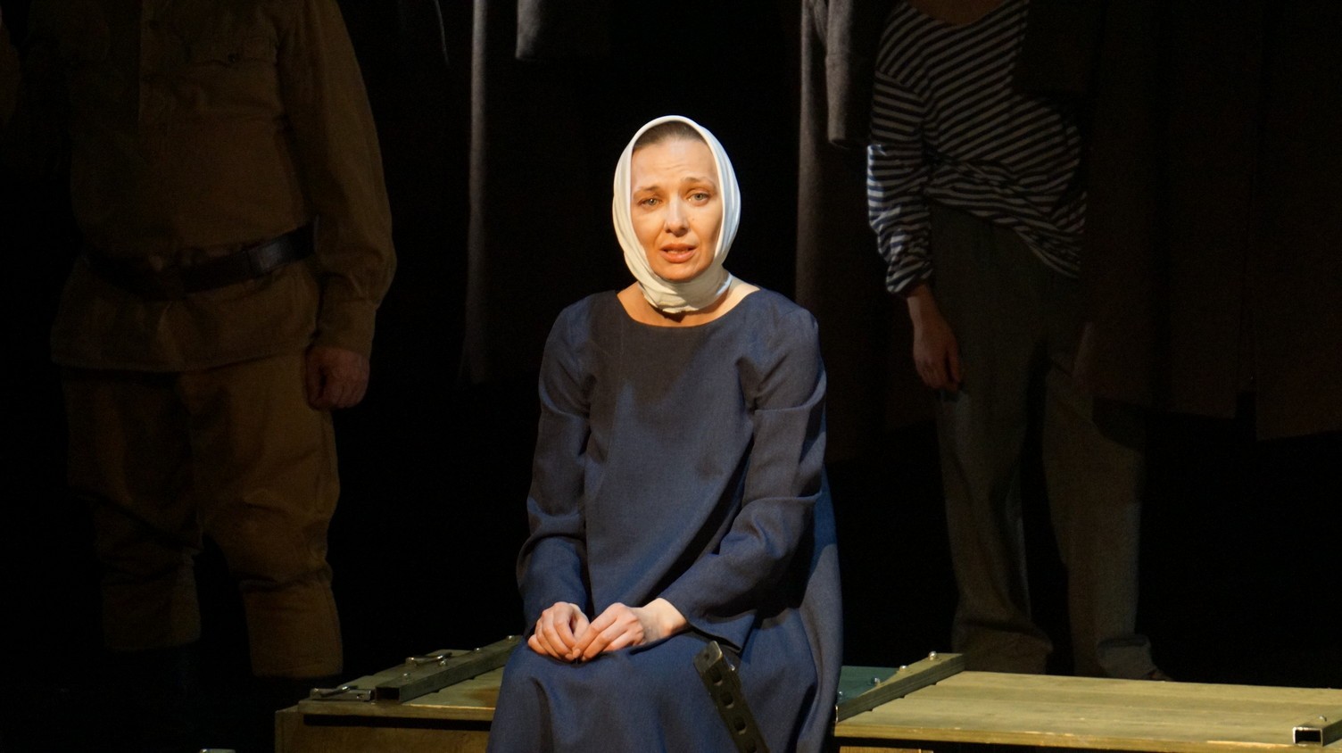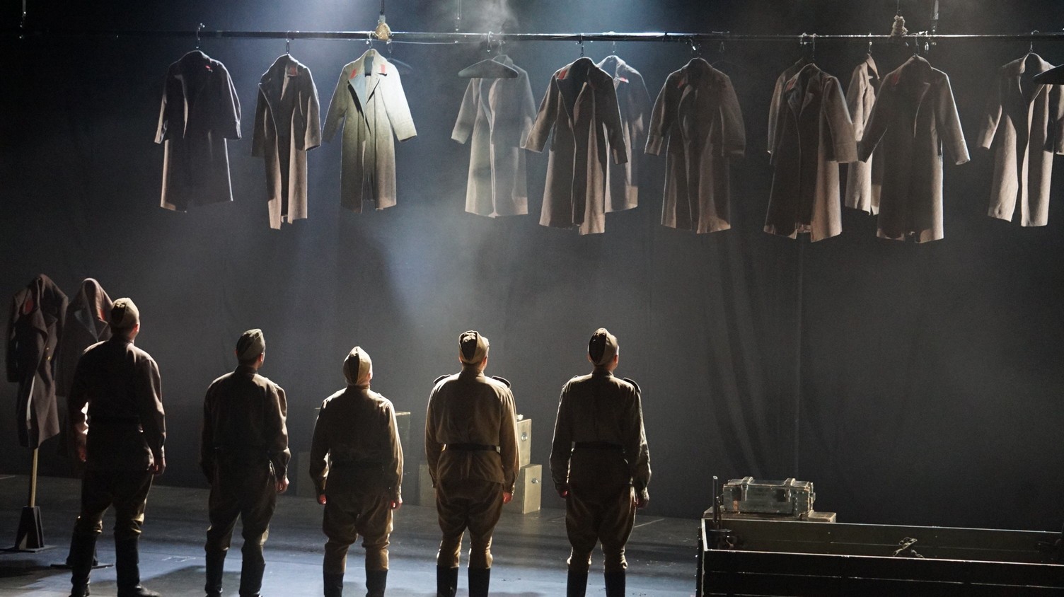 И у каждого актера, занятого в спектакле – у Владимира Куликова, Сергея Терпугова, Павла Жилина, Алексея Павлова, Антона Коцуренко Светланы Светлаковой – есть свое личное отношение к военному прошлому. У Сергея Терпугова дед – пехотинец закончил войну в Германии. У Алексея Павлова воевал дед, а прадед погиб под Сталинградом… Во всех нас глубоко «зашит» Василий Теркин. Он – в генетической памяти народа. Отсюда и постановочный ход – нет главного героя, герои – все, в каждом актере есть частица Теркина. И единственный женский образ – он тоже собирательный. Поэтому каждый актер стал частью сообщества, объединенного одними мыслями и чувствами. Так же работала художник- постановщик Наталья Корнева, так трудились все цеха театра. И художник по свету Елена Алексеева, приехавшая на постановку из Новосибирска: