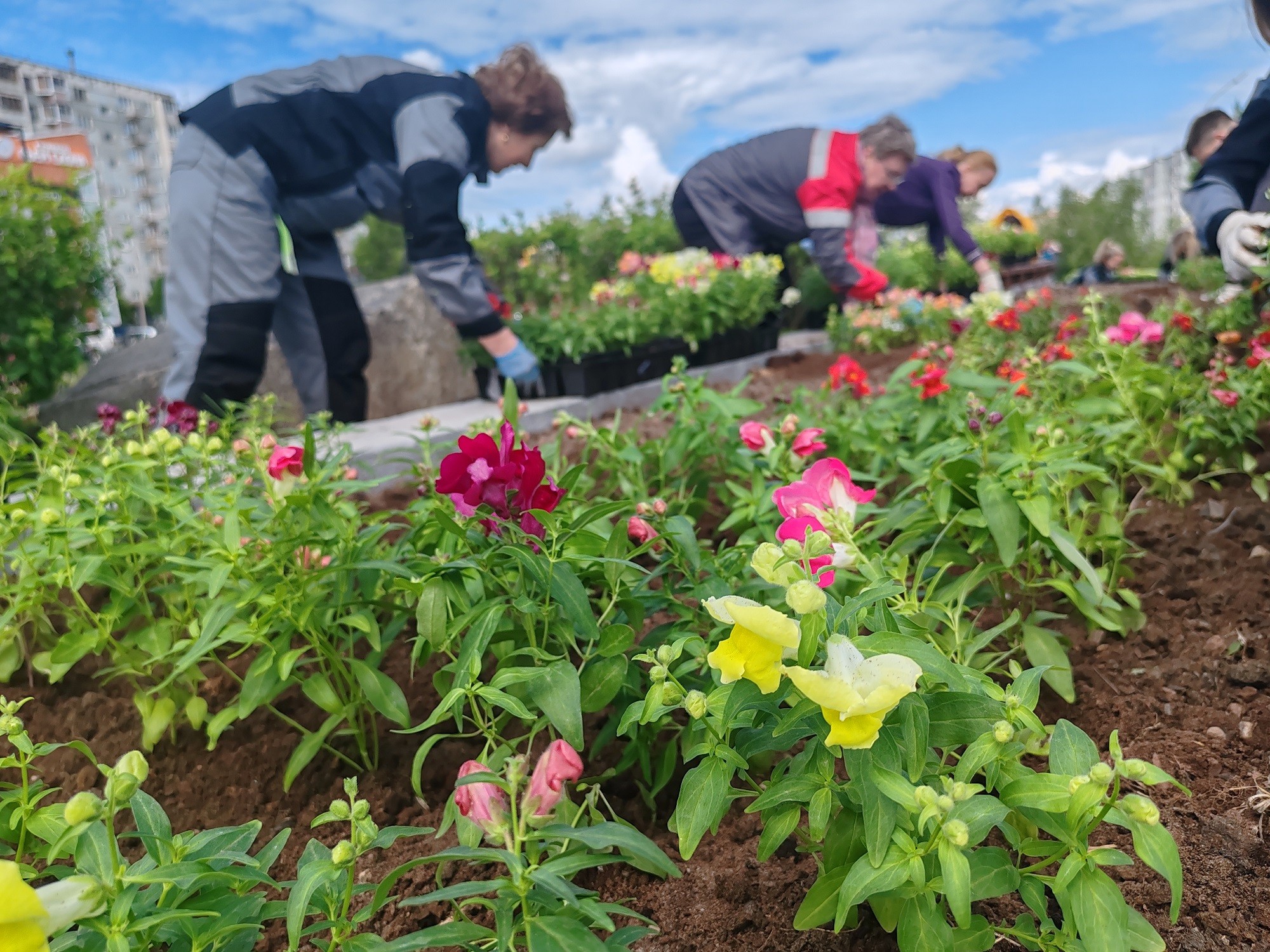 Львиный зев, петунии, флоксы… Теперь пешеходно-парковая зона на улице Крупской расцвела яркими и летними красками. Всего за день акции участники высадили свыше десяти тысяч различных цветов.