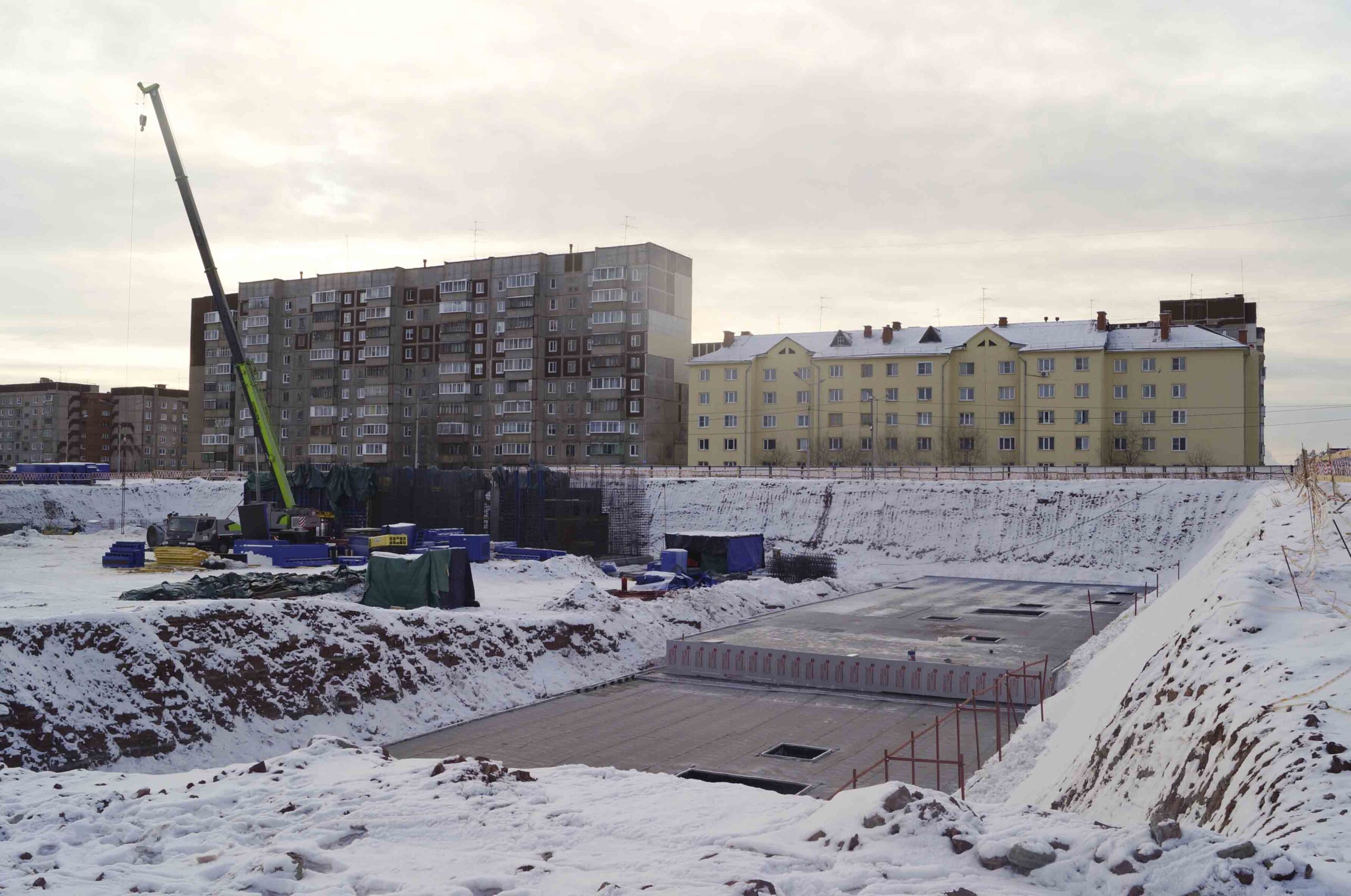 Владимир ТИМОФЕЕВ, руководитель проекта: «Обеспечение бетоном всё есть. Обеспечение бетоном проходит стабильно. Мы вышли из фундаментов. То есть, отлили бетонные плиты. Больше двух тысяч кубических метров бетона залили. Сейчас работаем по техническому подполью. То есть, это нулевой этаж».