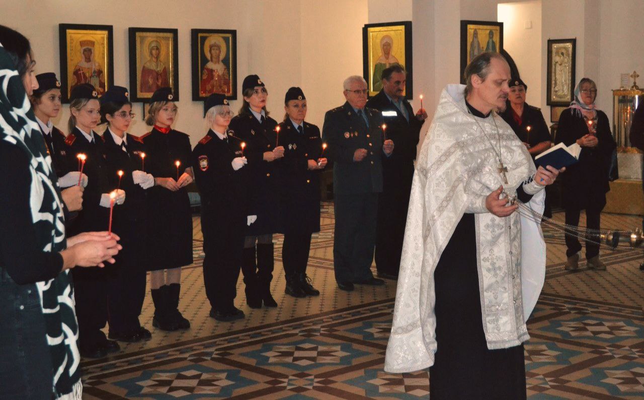 Сотрудники МУ МВД России «Братское», члены совета ветеранов, кадеты полицейского профиля и родственники героев приняли участие в панихиде. Служба состоялась 7 ноября в соборе Рождества Христова. В этот день православная церковь празднует «Дедовские плачи», а люди оплакивают умерших родственников и близких. Панихиду провел протоиерей Андрей Дорогобид.