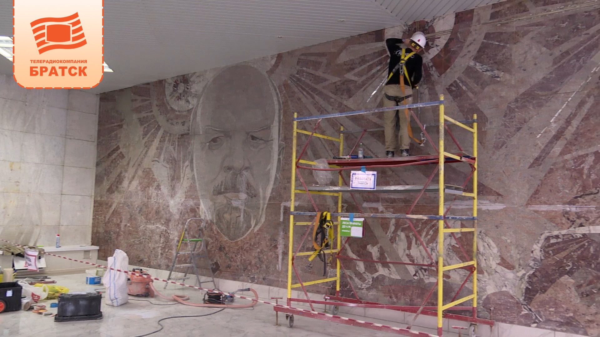 Работы ведутся в актовом зале, где масштабное полотно с изображением Владимира Ленина постепенно восстанавливает свой облик. По данным Музея истории Братскгэсстроя, 27 октября 1967 года «Восточно-Сибирская правда» опубликовала материал «Каменная летопись», посвященный завершению монтажа мозаики на бетонных плитах в вестибюле ГЭС. Автором эскизов этого значимого произведения искусства стал лауреат Государственной премии Григорий Опрыщко.
