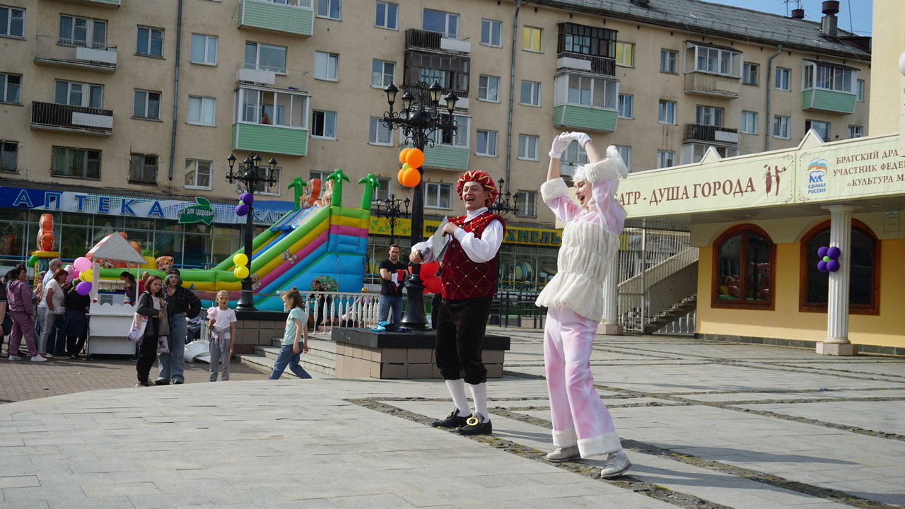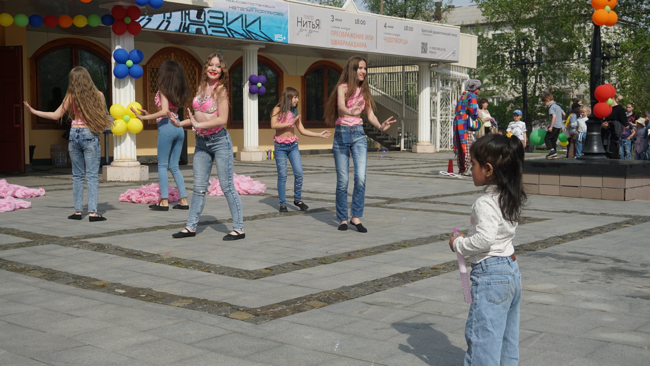 Каждый год 1 июня место встречи детей, мам, пап, бабушек, дедушек, прочих родственников и артистов Братского драматического театра остается неизменным – Театральная площадь. И все знают, что обязательно будет весело и интересно, а еще вкусно. Площадь превращается в Волшебную страну, где в ходу – особенные цветные денежки. Сказочные герои Волшебной страны Детства играют с ребятами и за активность дают им эту веселую валюту. А ее можно обменять на напитки и сладости. Концертную программу представили юные воспитанники «Самиры» и «Болеро». Парадом руководил Министр Волшебной страны, такой заводной, что у него танцевала вся площадь. А вечером Братский драматический показал задорную «Скоморошину» по известным и любимым русским сказкам. Хохотали все – и взрослые, и дети. Таким образом театр, как всегда, в День защиты детей оберегал братчан от скуки и печали. Вместе встретили лето – с надеждой на добро, мир, радость и защиту маленьких людей.
