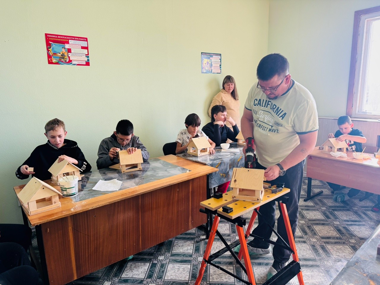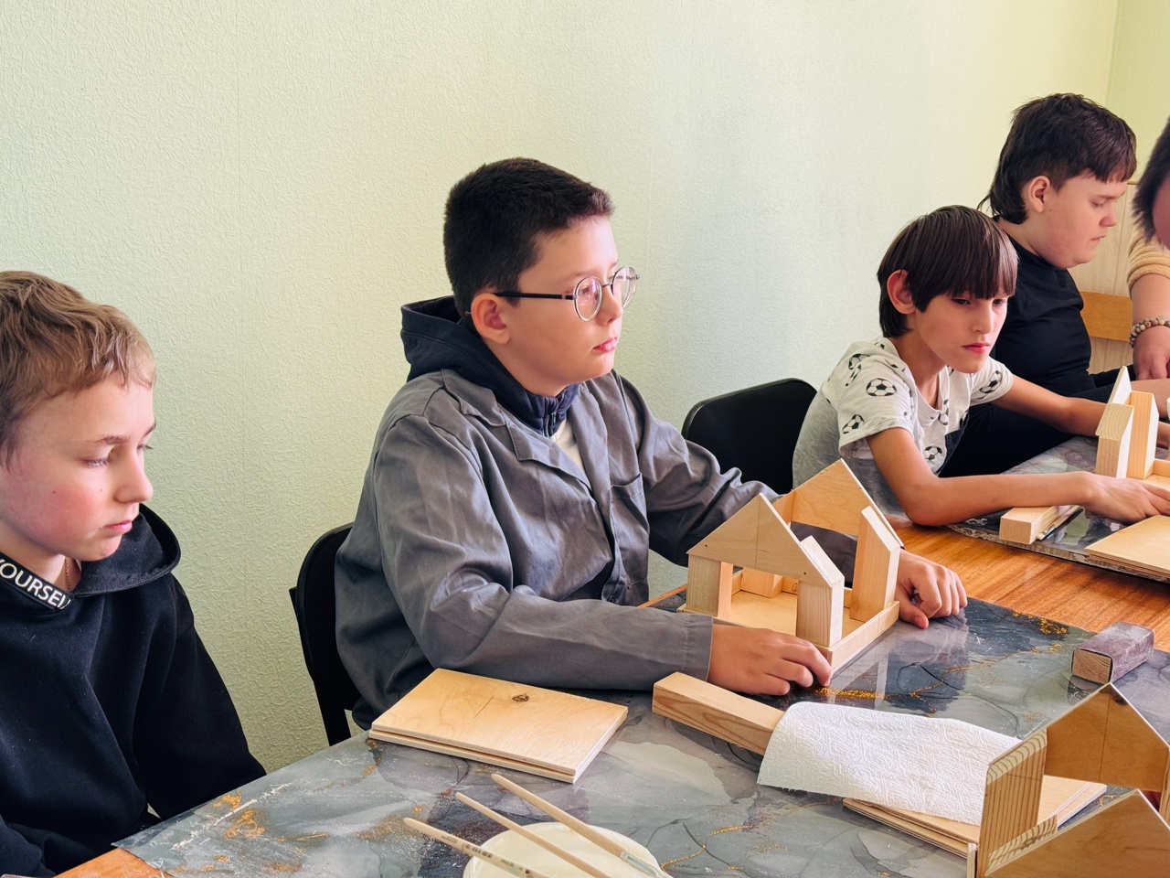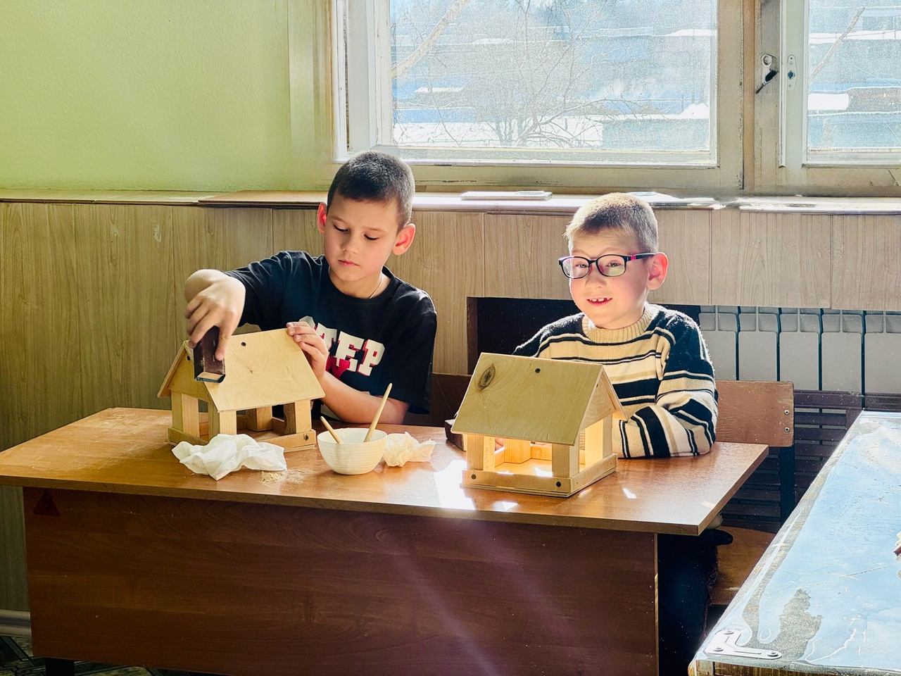 Для ребят занятие стало шестым по счёту. На нём они приклеили донья на скворечники и обработали дерево морилкой. Через неделю их ждёт финальный этап – покраска изделий. Затем они смогут их повесить у дома.