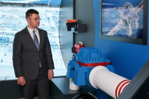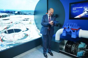Инсталляция «Инфраструктура и география» позволяет рассмотреть каждый объект компании. Представлен 3D-обзор самой северной нефтеперекачивающей станции предприятия – НПС-14 «Олекминск». Она расположена на многолетних мерзлых грунтах, где температура зимой доходит до 60 градусов ниже нуля. Другая инсталляция посвящена горным породам, которые встречаются на пути ВСТО.