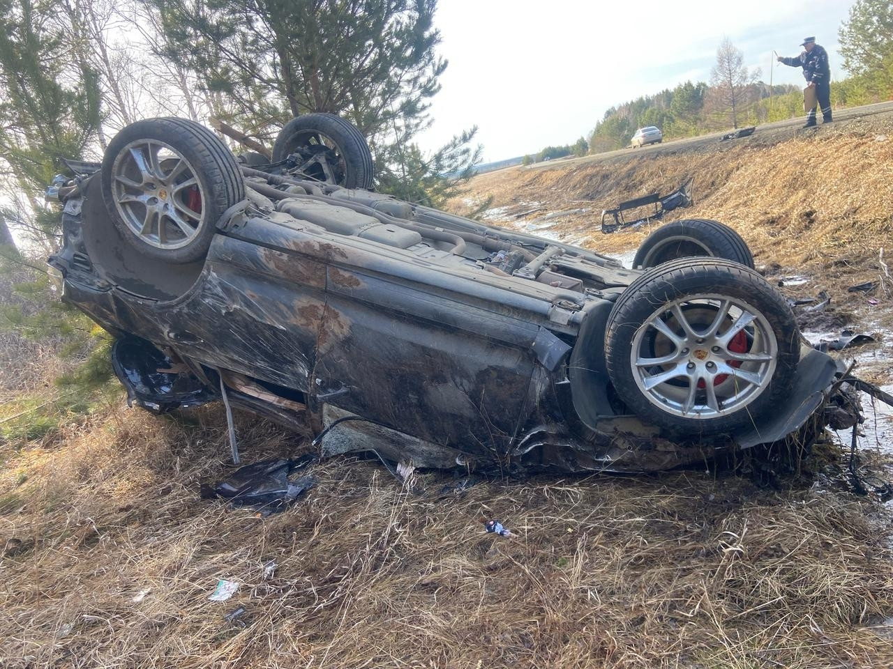 Инцидент произошел рано утром 13 апреля возле села Тангуй. Как установили автоинспекторы, водитель «Порше» ехал на автомобиле со скоростью более 110 километров в час, превышая разрешенную скорость движения. В какой-то момент мужчина не справился с управлением, автомобиль вылетел в кювет, где перевернулся.